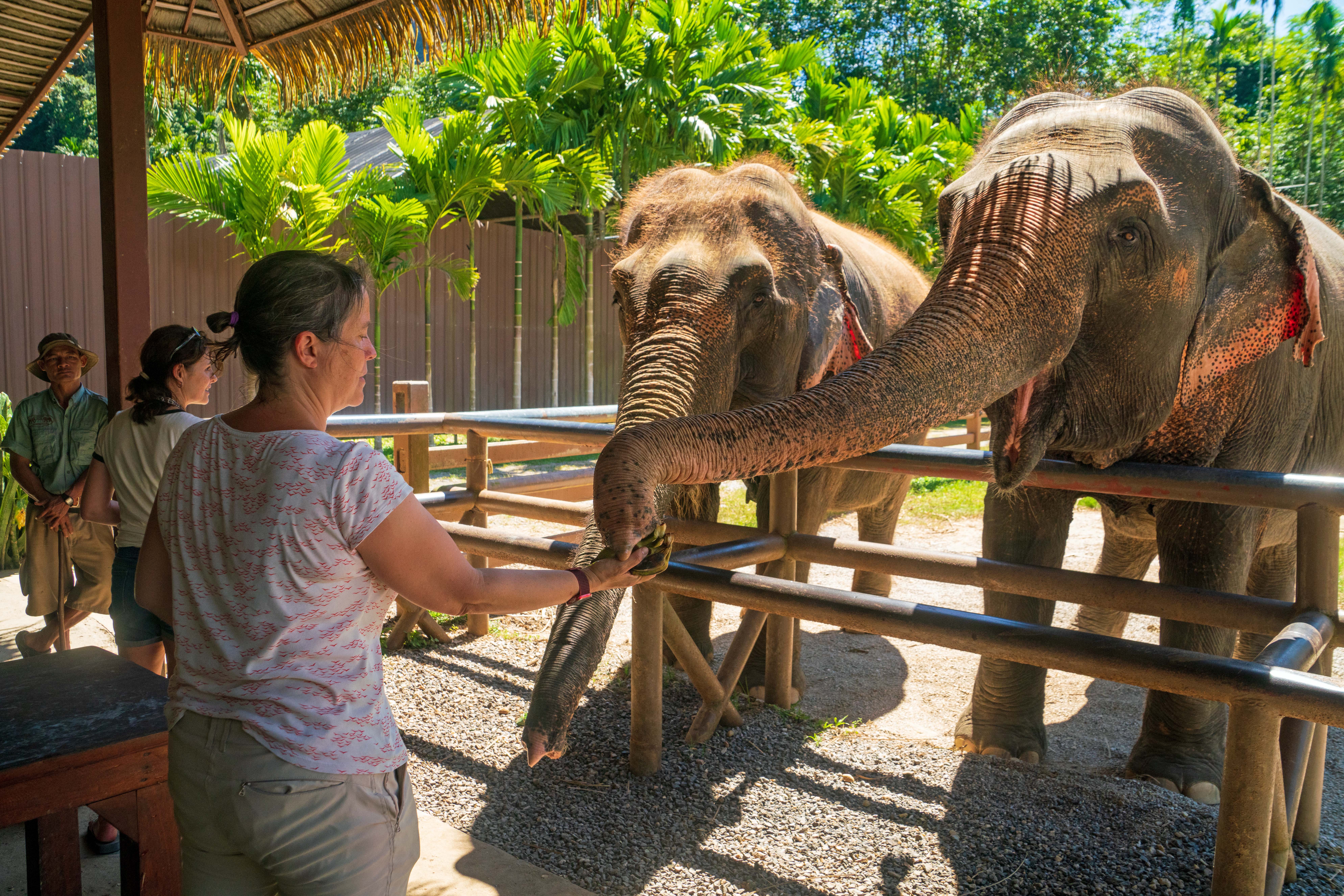 At 7.50 as expected the transfer to Elephant Hills appeared. We said a fond farewell to our exclusive hotel and got onboard. We were the only ones, so we spread out and enjoyed the 2.5 hour trip across the Thai peninsula to the camp. It was a very scenic ride - the country is so lush and green. We arrived and all the paperwork with our names was ready on the table for us to fill in - so efficient. We also received a pink drink each - no idea what it was?